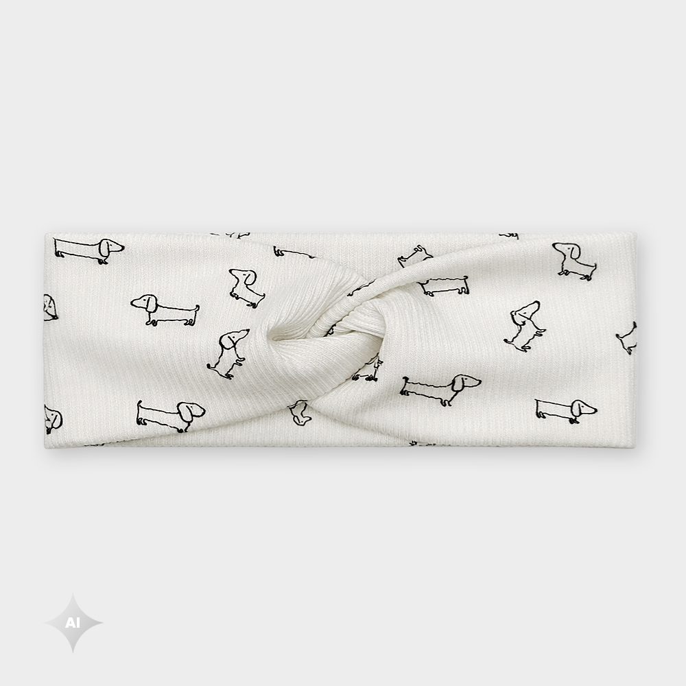 Látková čelenka Jezevčíčci žbr má obvod 55-57 cm a šířku 8 cm. Materiálové složení této čelenky je 95% bavlna, 5% elastan.